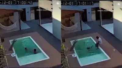 La escena duró solo unos segundos, pero fueron suficientes para generar preocupación. Al escuchar el ruido y notar lo que ocurría, el padre de los niños reaccionó de inmediato, corrió hasta la piscina y logró sacarlos del agua, evitando una tragedia mayor. Afortunadamente, los pequeños resultaron ilesos.