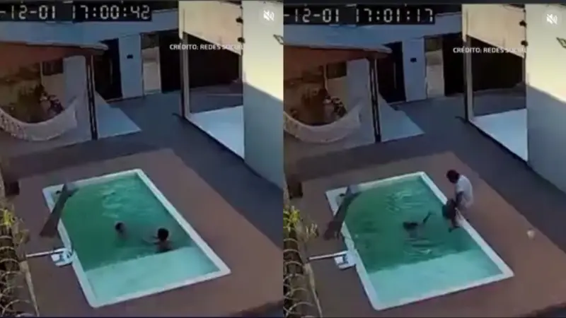 Un momento de mucha angustia quedó registrado por cámaras de seguridad en la ciudad de Arapiraca, en Brasil, y rápidamente se volvió viral en redes sociales. En el video se observa cómo dos hermanos pequeños caen a una piscina y comienzan a luchar por mantenerse a flote sin poder salir por sus propios medios.