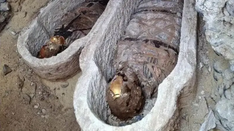 Ajuar ecléctico: Junto a las momias con decoraciones geométricas, se recuperaron sarcófagos de madera policromada, estatuillas de Harpócrates y Cupido en terracota, y curiosidades como la cabeza de un felino envuelta en tela.