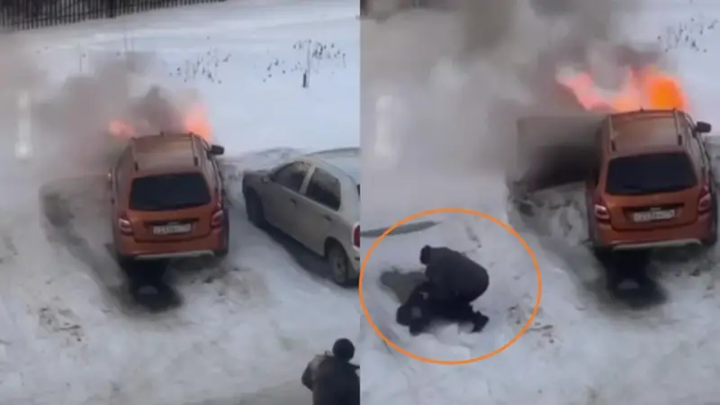 Un dramático rescate que bordea lo milagroso fue captado en video en la república de Bashkiria, donde la decisión de un solo hombre marcó la diferencia entre la vida y la muerte. Un transeúnte se convirtió en el protagonista de una hazaña heroica al salvar a un conductor que se encontraba atrapado e inconsciente dentro de un vehículo envuelto en llamas.