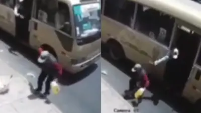Según testigos y las imágenes registradas, la víctima salía de hacer sus compras cuando tropezó y cayó al pavimento. En ese instante, una unidad de transporte público que pasaba por el lugar lo arrolló.
