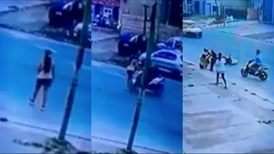 El hecho quedó registrado por cámaras de seguridad de la zona. En las imágenes se puede ver a la víctima, el vehículo de dos ruedas.