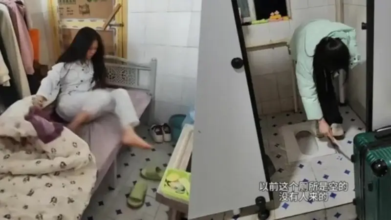 Esta es la situación que atraviesa una joven de 19 años que trabaja en una fábrica de muebles en China, quien habita un pequeño baño sin uso para poder ahorrar dinero en el pago del alquiler.