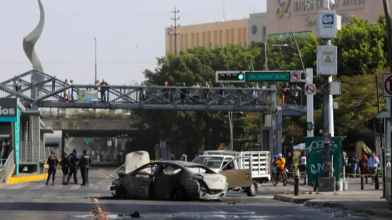 En varios puntos de Jalisco, medios locales reportaron vehículos incendiados y bloqueos de carreteras, principalmente en la región sur del estado, tras el operativo en el municipio de Tapalpa.
