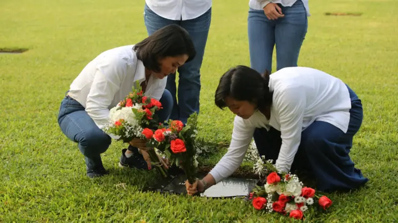 En ambas tumbas depositaron ramos de flores y se tomaron una fotografía con una estatua del exmandatario Fujimori instalada en un banco de ese cementerio.