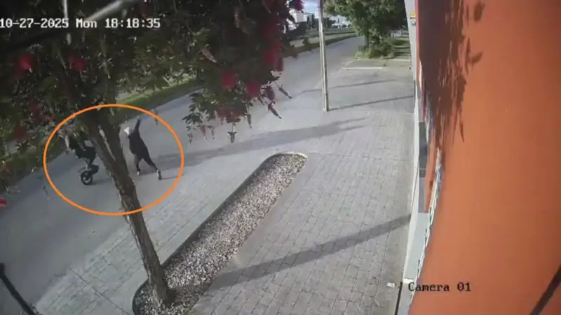 Las imágenes de seguridad muestran al joven agresor caminando sobre la vía. Al pasar el hombre de 50 años a bordo de su bicimoto, el adolescente le arroja un ladrillo que impacta directamente en su rostro. La víctima cae de cara al pavimento, sufriendo múltiples lesiones.