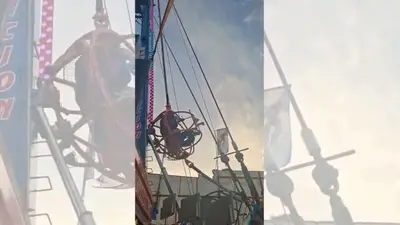 Momentos de terror en una feria: se rompe cuerda y niños quedan en el aire