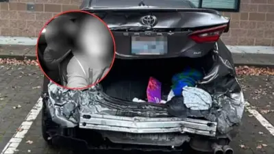Al llegar al lugar, la pasajera pidió a la conductora acelerar, ya que su esposo la seguía de cerca en otro vehículo. Durante la persecución, el agresor embistió el automóvil de la taxista en al menos cuatro ocasiones, dañando gravemente la parte trasera del vehículo.