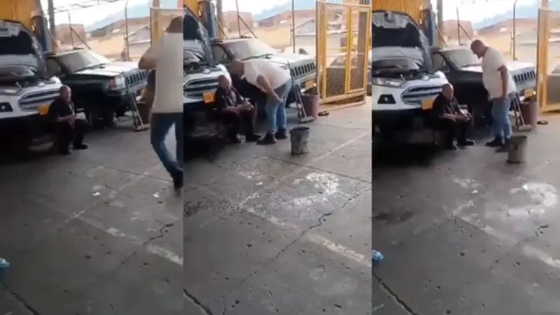 Un video de apenas 17 segundos encendió la indignación en todo Colombia. Las imágenes muestran el momento en que un hombre, presuntamente el dueño de un taller mecánico en la ciudad de Pereira (Risaralda), lanza un balde de agua sobre un adulto mayor que trabajaría en el lugar.