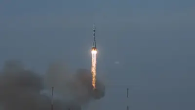 "Así se ve el lanzamiento del cohete portador Soyuz 2.1.a desde el cosmódromo de Baikonur (...) ¡Felicitamos a la tripulación por el exitoso lanzamiento y los esperamos a bordo de la estación!", escribió Alexéi Zubritski, inquilino de la EEI, que logró hacer una foto del despegue desde el espacio.