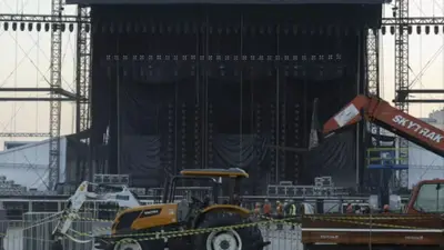 La víctima, un técnico de seguridad de 28 años, falleció por el impacto de "una estructura del montaje del escenario que se desplomó", según señaló la Policía Militar de Río en una nota.