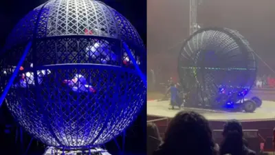 El accidente ocurrió cuando tres motociclistas giraban dentro de una esfera de acero iluminada con luces LED en sus trajes. Durante la secuencia, el joven chileno perdió el control de su moto y cayó al centro de la esfera, provocando que los otros dos artistas colisionaran al intentar esquivarlo.