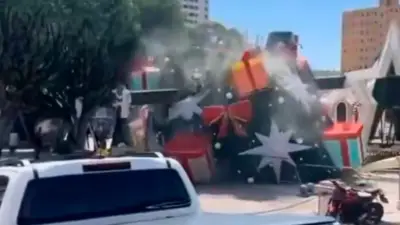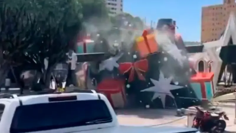 Videos del accidente se difundieron en redes sociales y muestran al operador de la grúa, vestido de Papá Noel, saltando del vehículo en el momento en que la estructura comenzaba a colapsar.