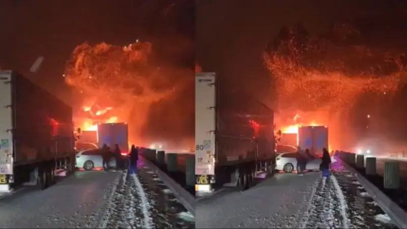 El accidente se originó cuando dos camiones colisionaron, lo que provocó una reacción en cadena en medio de una intensa tormenta de nieve. Posteriormente, más de 50 vehículos impactaron entre sí, y al menos una decena se incendió tras el choque.