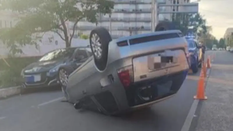Un conductor de Córdoba protagonizó un llamativo accidente al intentar espantar a una avispa dentro de su auto. El vehículo volcó tras impactar con otro que estaba estacionado.