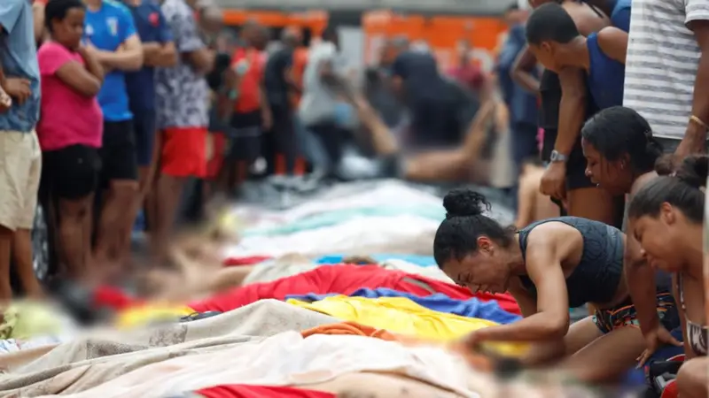 Las imágenes de agencias internacionales, como Reuters, muestran el momento en que vecinos transportan cuerpos sin vida tras el operativo, en medio del caos y el llanto de las familias.