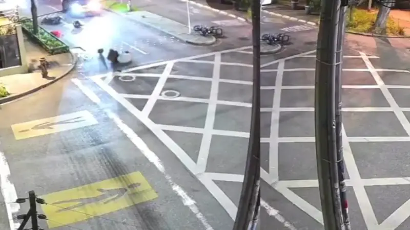 El incidente ocurrió en el Barrio San Patricio, localidad de Usaquén, Bogotá (Colombia), y fue captado por la cámara de seguridad de un establecimiento cercano. En los 39 segundos del clip, se observa cómo los repartidores intentaban cruzar una intersección sin percatarse de la presencia del otro, lo que derivó en un choque de gran fuerza.