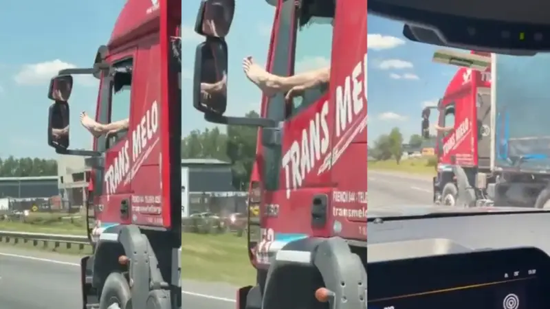 El episodio ocurrió el pasado 13 de noviembre, pero recién en las últimas horas el video se viralizó. El chofer, empleado de una empresa de Luján, adoptó la peligrosa postura mientras manejaba un camión de gran porte y quedó expuesto tras ser filmado por un automovilista que no pudo creer lo que veía.