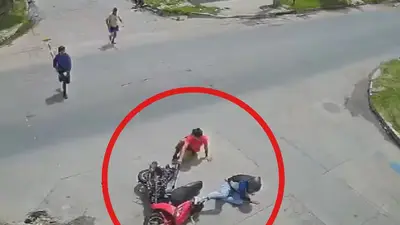 En su intento de huir, uno de ellos se subió a la moto, pero ambos cayeron en primera instancia. El delincuente que conducía reaccionó de manera inmediata e intentó escapar, pero su acompañante no logró subirse correctamente; tras varios intentos, ambos cayeron nuevamente al piso.