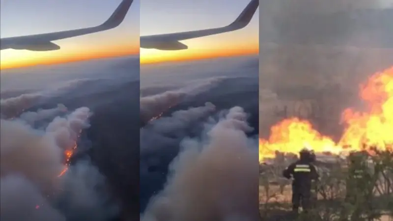 Pasajeros del vuelo Concepción-Santiago captaron imágenes de la catástrofe que ya deja miles de hectáreas calcinadas, a la región bajo Estado de Catástrofe, y al menos 19 fallecidos.