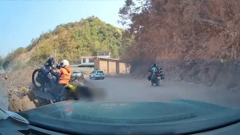 El incidente ocurrió aproximadamente a las 11:30 de la mañana. En las imágenes de una cámara de seguridad instalada en un automóvil, se observa cómo la conductora circulaba por una carretera montañosa de un solo carril, rodeada de terrenos inestables y obras viales. Al intentar maniobrar en una zona estrecha, la motocicleta se desvió hacia el borde del camino, precipitándose al vacío en cuestión de segundos ante la mirada atónita de otros conductores y transeúntes.