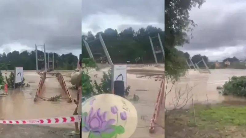 Un dramático momento se vivió este jueves 20 de noviembre en la provincia de Lam Dong, Vietnam, cuando el puente colgante de Phu Thien fue arrastrado por las crecientes aguas del río Da Nhim.