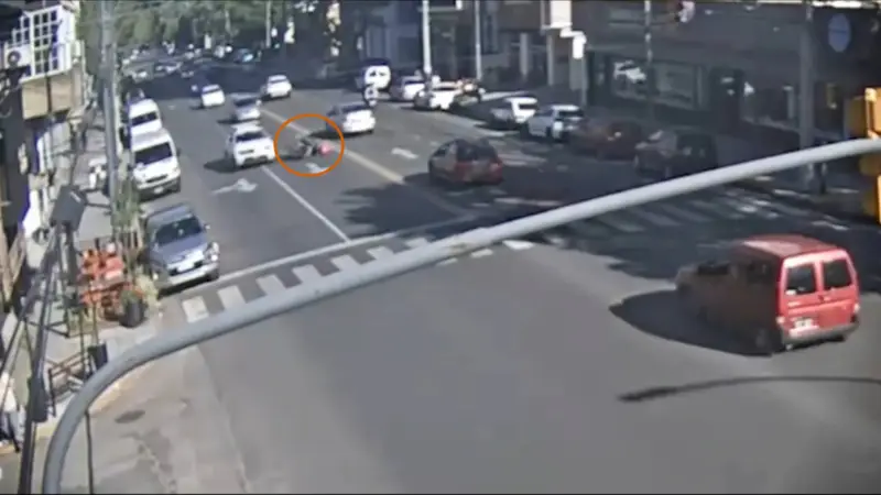 El repartidor lo sigue algunas cuadras y logra ponerse a la altura de la ventanilla delantera izquierda para insistir en su reclamo. En ese momento, el conductor del vehículo de cuatro ruedas realiza un 'volantazo' hacia la izquierda y lo embiste con violencia, provocando que el motociclista salga despedido hacia el carril contrario.