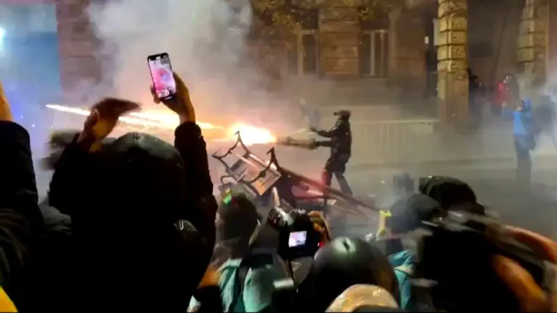 Los manifestantes, en su mayoría pro-UE, se enfrentaron a la policía con una violencia creciente, disparando fuegos artificiales a los oficiales con lo que parecía ser una "ametralladora" improvisada. La situación estalló tras la decisión del gobierno de suspender las negociaciones para la adhesión de Georgia a la Unión Europea, lo que generó un fuerte descontento en la población, publica El Horizonte.