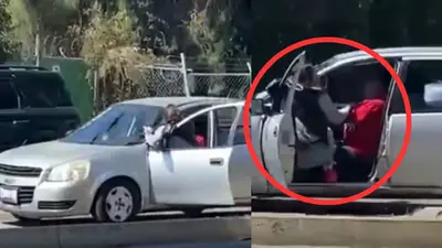 En las imágenes se observa el momento exacto en que la mujer, en un acto de desesperación y valentía, se aferra a la puerta de su propio automóvil mientras el delincuente acelera a fondo sobre el transitado bulevar Valsequillo.