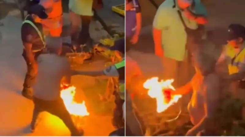 En medio del enfrentamiento, el hombre roció su remera con combustible y la prendió fuego frente a los agentes para evitar que le secuestraran la moto. Mientras agitaba la prenda encendida, amenazó a los policías. Todo fue grabado por vecinos y el video se hizo viral.