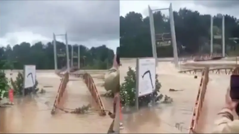 En la provincia de Lan Dong, un impactante episodio quedó registrado en video: un puente colgante sobre el río Da Nhim fue arrastrado por la repentina crecida del caudal, derrumbándose en cuestión de segundos.