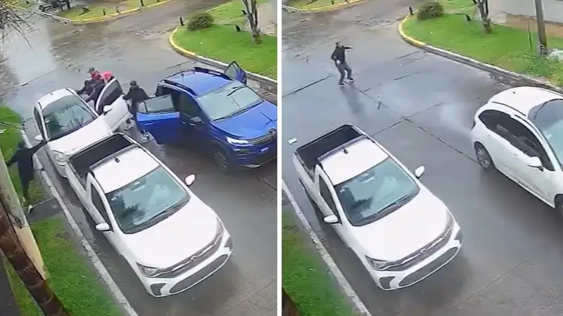 El violento episodio generó conmoción entre los vecinos de la zona, que denuncian el incremento de asaltos armados y exigen mayor presencia policial. Las autoridades locales ya analizan las grabaciones para intentar identificar a los responsables.