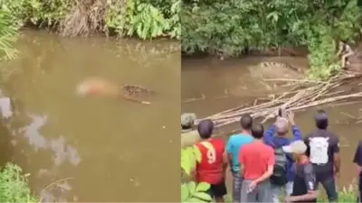 Medios locales informaron que el cocodrilo emergió en varias ocasiones con el cuerpo de la mujer entre sus mandíbulas. Los residentes intentaron forzar al animal a soltarla utilizando palos, cañas de bambú y cuerdas, pero los esfuerzos fueron insuficientes ante el tamaño y la fuerza del reptil.