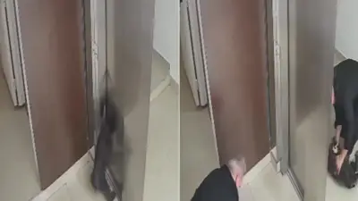 El perro quedó colgado por su correa al cerrarse la puerta del ascensor. Todo el hecho quedó registrado por las cámaras de seguridad del edificio.