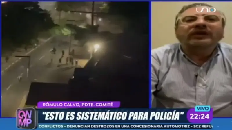 “Le he hecho ver al comandante de la Policía de esto viene desde que la Policía está siendo usada para proteger a las hordas masistas cuando atacaron en los 36 días, cuando era la punta de lanza para que ellos abusen de la población del Plan Tres Mil, cuando los vehículos policiales llevaban comida cuando nos estaban cercando(…)Hemos visto la detención en el centro de la ciudad, cómo abusaron de esos jóvenes”, dijo Rómulo Calvo al ser consultado por los excesos de la Policía registrados en los últimos días en Santa Cruz.