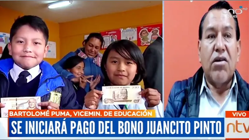 El Bono Juancito Pinto es un incentivo económico de Bs 200 a la permanencia escolar, que permitió reducir la deserción escolar en Bolivia. Puma detalló que en la gestión 2021, la tasa de abandono en primaria alcanzó 1,22% y en secundaria 3,78%.