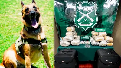 El secuestro de la droga se registró cerca de las 12:30 cuando personal de Tenencia Carreteras de Hijuelas desarrollaba controles vehiculares aleatorios junto al OS7. Hasta que detuvieron un bus de la empresa Plusschile, que venía desde la ciudad de Antofagasta, con destino a Santiago. En ese momento, al can “Frosty” le llamaron mucha la atención un par de maletas, que, al abrirlas, carabineros descubrieron un cargamento de marihuana.