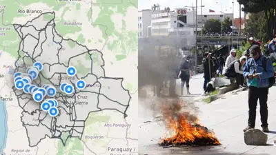 Según el mapa de transitabilidad de la ABC, 43 puntos de bloqueo afectan carreteras de seis departamentos, pese al diálogo entre el Gobierno y la COB por el Decreto Supremo 5503.