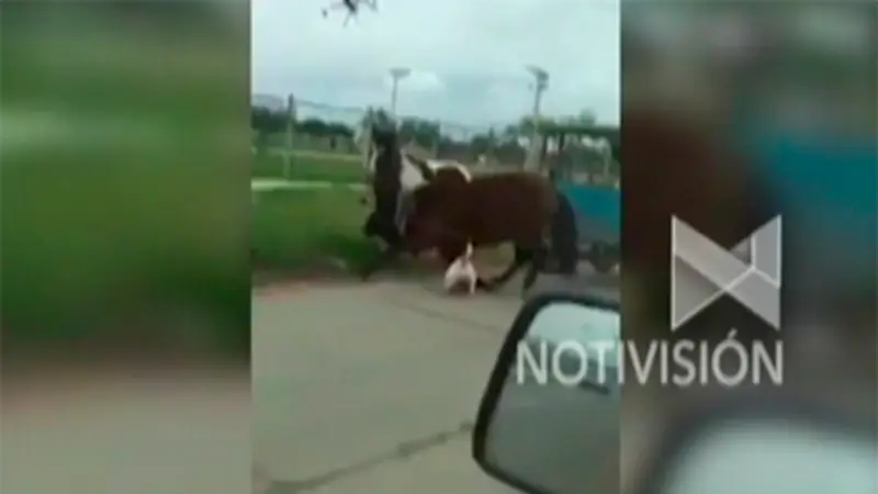 Miedo a ser mordidos por un perro de raza Bull Terrier, así están los vecinos de la zona del 8vo. anillo y Cambódromo que en días pasados se observó como este animal salió de la casa donde vive y atacó a un caballo que jalaba una carrosa, fueron momentos de desesperación de la dueña del animal por el ataque que no paso a mayores, pero que sí dejo heridas en el cuadrúpedo.
