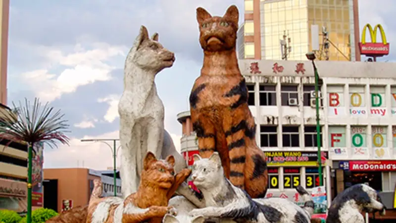 La ciudad de Kuching, se encuentra en el Estado de Sarawak en Malasia, pero a diferencia de otras ciudades, la mayoría de la población felina es en forma de estatuas y esculturas instaladas por sus habitantes obsesionados por estos animales. 😻