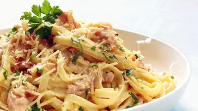 Red Uno Bolivia.- Si no tienes mucho tiempo para la cocina, El Mañanero te trae esta práctica y exquisita receta elaborada por la chef Tania Uribe 👩🏾🍳, “Tallarín a la Carbonara” acompañado de unas pancetas será la delicia de tus comensales.
