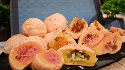 | 1.- | Mezclar en un bowl el queso, un huevo y almidón de yuca e integrar. | ||