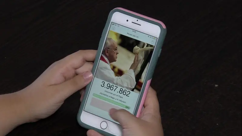 El papa Francisco presentó el domingo su propio perfil en la aplicación para teléfonos Click To Pray, realizada por la Red Mundial de Oración del papa, durante el rezo del Ángelus en la Plaza de San Pedro.