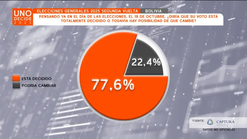 Como resultado se tuvo que el 77,6% ya tiene su voto totalmente decidido, mientras que el 22,4% aun puede cambiar su decisión.
