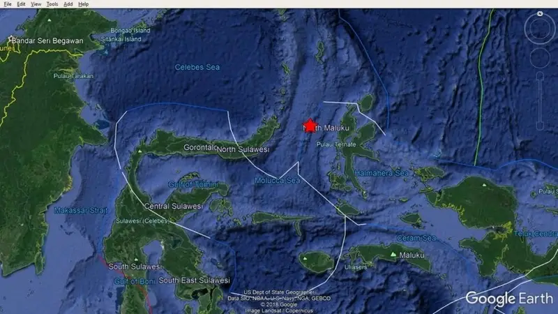 El terremoto se registró a las 16.17 UTC con el epicentro ubicado a unos 133 kilómetros al noroeste de la ciudad de Ternate. El movimiento telúrico se situó a una profundidad de unos 62 km.