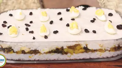 preparar arroz batido y armar el pastel con el jigote en el medio