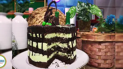 Para la torta: precalentar el horno a 170ºC. Enmantecar y enharinar 1 molde de torta de 20 cm.Tamizar en un bowl la harina, el cacao, el polvo de hornear y el bicarbonato. Agregar el azúcar. En otro bowl, mezclar todos los ingredientes húmedos. Integrar las dos partes y mezclar hasta obtener una mezcla homogénea. Derramar la preparación en el molde y cocinar durante 40 minutos aproximadamente, o hasta que al pincharla con un palillo éste salga húmedo. Luego, dejar enfriar mientras se prepara el relleno.Para el relleno: batir la manteca pomada junto con la crema, hasta que la mezcla se vea cremosa y pálida, llevará unos 5 minutos aprox. Tamizar el azúcar impalpable, y continuar batiendo a velocidad mínima, hasta que esté totalmente integrada. Agregar la esencia de menta y el colorante. Por último, agregar parte del chocolate picado bien finito, el resto se usará para decorar.Para armar la torta, cortar las torta en 4 capas iguales y humedecerlas con almíbar. Intercalar las capas de bizcocho con la crema. Apilar las 4 capas y cubrir la torta con el resto de la crema. Decorar con el resto del chocolate picado y dejar enfriar en la heladera.
