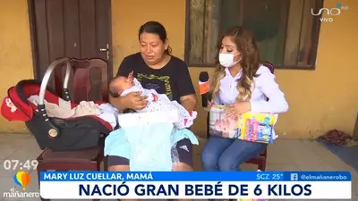 "No recuerdo a otro bebé con más peso que el recién nacido", manifestó Sandoval, quien acto seguido explicó que el bebé está estable y se alimenta con normalidad, aunque "es bastante tragoncito".