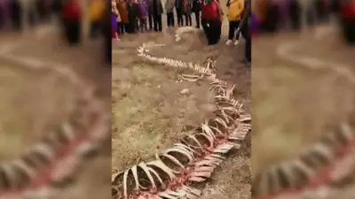 Red Uno Bolivia.- El hallazgo fue en China, Zhangjiakou, se trataría de un esqueleto de dragón y mide 18 metros de longitud que describe a una criatura que no ha podido ser identificada. La noticia del hallazgo, se ha publicado en un video que ha sido visto por miles de cibernautas.