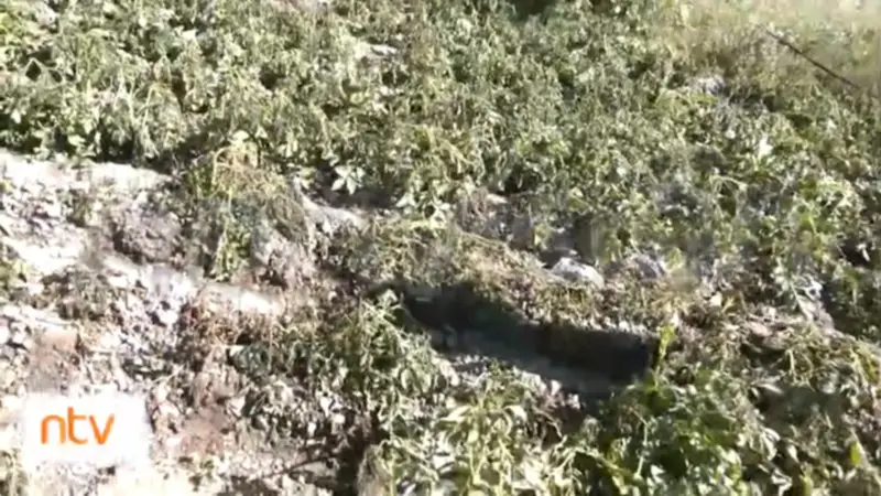 El productor mostró las plantas de papa totalmente dañadas, de las que no se puede recuperar nada porque aún faltaban unos tres meses de desarrollo. También se perdieron varias hectáreas de maíz, cebolla, haba, arveja, entre otros.